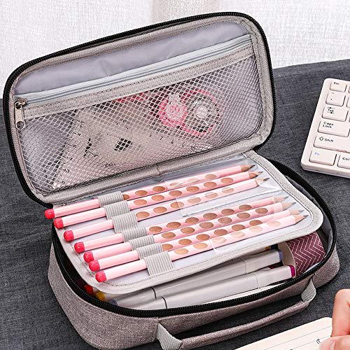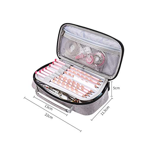 - 2. La caja de lápiz tiene una enorme capacidad.La caja de lápiz puede almacenar 78 plumas diarias de varios pinceles.La caja de lápices es cómodo de llevar y no ocupa demasiado espacio.Diseñado con una correa de mano para facilitar su transporte.