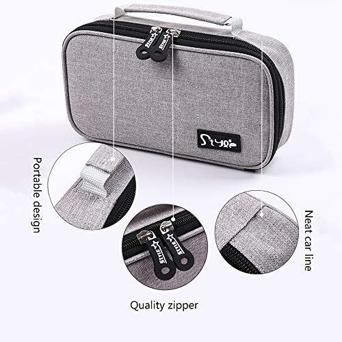 - 2. La caja de la pluma tiene una capacidad enorme, y hay múltiples compartimentos en el interior para facilitar la clasificación y almacenamiento de la caja de la pluma.El caso del lápiz puede almacenar diversos cepillos para el uso diario.El caso pluma es más cómodo de llevar y no ocupa demasiado espacio.Diseñado con una correa de mano para facilitar su transporte.