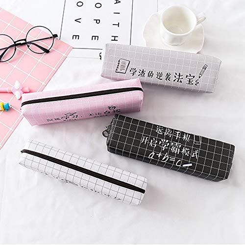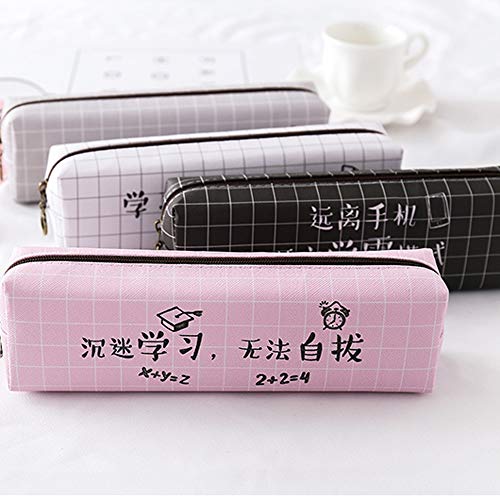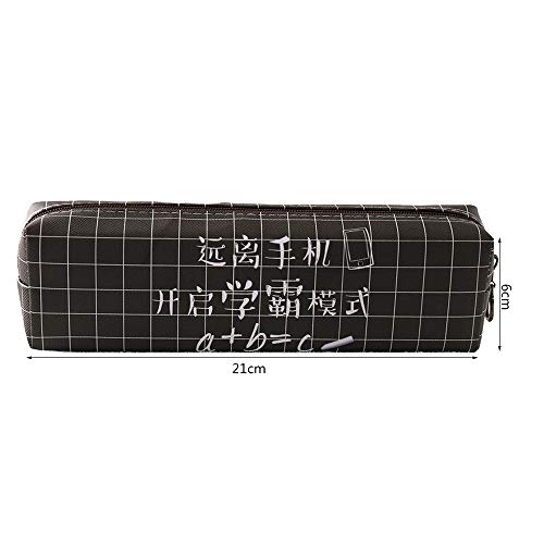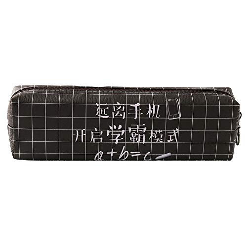 LRHD Simple lápiz de gran capacidad tela escocesa del estilo chino del carácter del cuero Caso masculino y femenino Estudiante Escuela de almacenaje de los efectos Examen Aula Lápiz Borrador (negro)