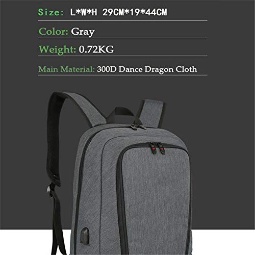 Mochila for portátil Impermeable bagpack USB Externo Masculino Interfaz de Viajes de Negocios Bolsas de Moda Femenina Bolso de Escuela de la Vendimia (Color : Gray)