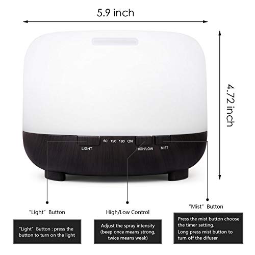 - 【500ml de Capacidad y Sin BPA】: Gran capacidad y más niebla. Hasta 10 horas de tiempo de trabajo. Refresca e hidrata el aire para habitaciones de 25 a 60 m². el difusor no contiene BPA, es seguro para niños y embarazadas.