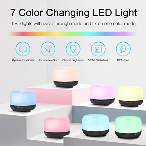 500ml Difusor de Aceite Esencial, TENSWALL Control Remoto Humidificador Ultrasónico con Luces LED Cambiantes de 7 Colores