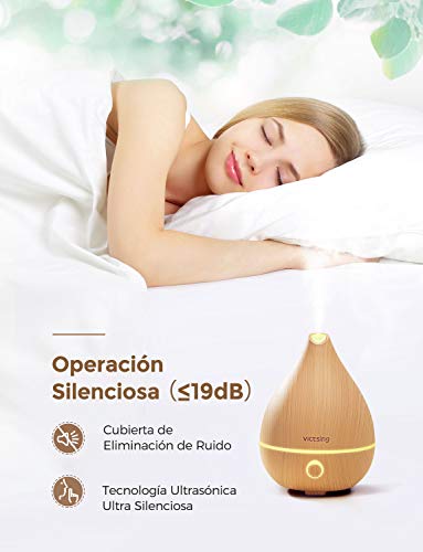 - ♥Tecnología de Reducción de Ruido Superior♥ equipad o con la cubierta reductora de ruido y el motor de alto rendimiento, VicTsing difusor aromaterapia ruido de goteo funcionamiento puede controlarse a 19db para crear un ambiente de trabajo/ dormir súper silencioso y acogedor, para el cual la gente casi no lo oirá a una distancia bastante cercana cuando este difusor de aroma funciona; ideal para dormitorio, sala de estar, oficina, spa, yoga.