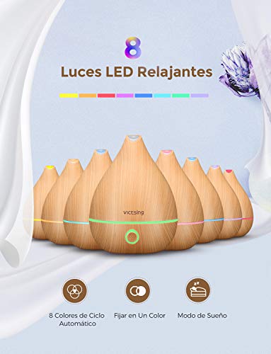 - ♥ Botón 4 en 1 Para una Operación Fácilel ♥ difusor de aroma victsing integra cuatro funciones (encendido/ niebla/ luz/ sueño) en un solo botón; la pulsación corta y la pulsación larga hacen que el modo de nebulización normal con luz encendida y el modo de suspensión con luz apagada sean fácilmente alcanzables, atendiendo a diferentes preferencias; los 8 colores de la luz (naranja/ amarillo/ blanco/ cian/ verde/ azul/ púrpura/ rojo) se pueden ajustar entre el modo de ciclo gradual.