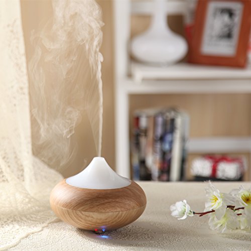GX Diffuser Ultrasonico Difusor de Aceites Esenciales Electrico Aromaterapia Humidificador Ambientador Aceite Quemador con Cambiar Nightlights para el Espacio Pequeño Madera Clara
