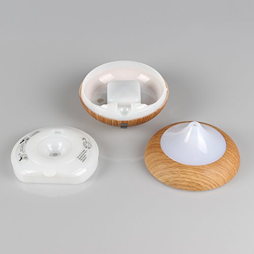 - 8 COLORES de LED: El difusor aceites esenciales cuenta con luces de LED especiales. Los colores de la luz LED varían de naranja, amarillo, blanco, cian, verde, azul, púrpura a rojo. Puede eligir cualquier color entre los 8 colores de LED(puede programar el periodo de funcionar) para crear un ambiente romántico. Mientras la luz puede funcionar como la luz nocturna.