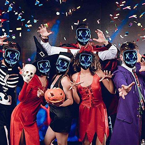GHONLZIN Máscaras LED, Máscara de Halloween LED Glow Scary Light Up Máscaras para Fiesta Fiesta Carnaval Disfraz Navidad (Blue)