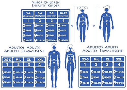 - GuĆa de tallas: 2-4 aƱos (Altura: 100 cm, Pecho: 56 cm, Cintura: 53 cm, Cadera 59 cm) // 4-6 aƱos (Altura: 114 cm, Pecho: 61 cm, Cintura: 57 cm, Cadera 65 cm) // 7-9 aƱos (Altura: 135 cm, Pecho: 70 cm, Cintura: 62 cm, Cadera 74 cm) // 10-12 aƱos (Altura: 150 cm, Pecho: 75 cm, Cintura: 65 cm, Cadera 80 cm)