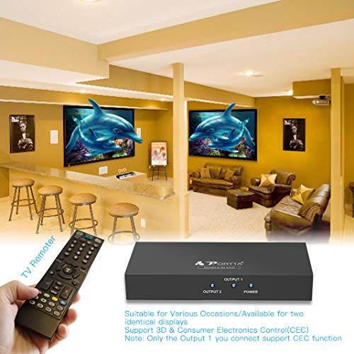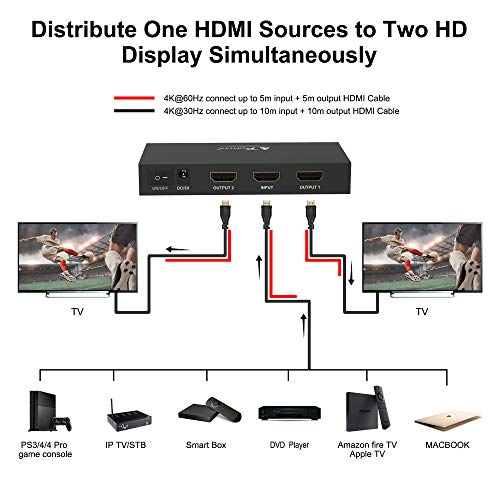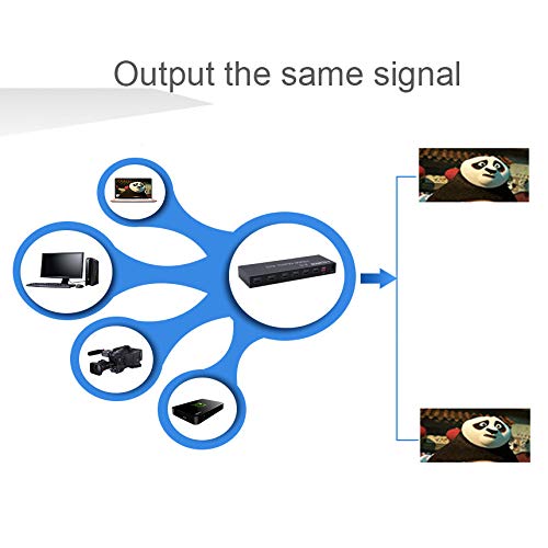 - 【Amplio Compatible】Este divisor funciona con la mayoría de los dispositivos con interfaz HDMI estándar, como HDTV, Roku TV, Feu TV, PS3, PS4, PS4 Pro, Xbox One, Blu-Ray DVD, STB, XBox 360, PC, etc. El divisor 4K también es compatible con versiones anteriores de HDMI, y admite dispositivos de resolución de video HDMI 1080p / 720p.