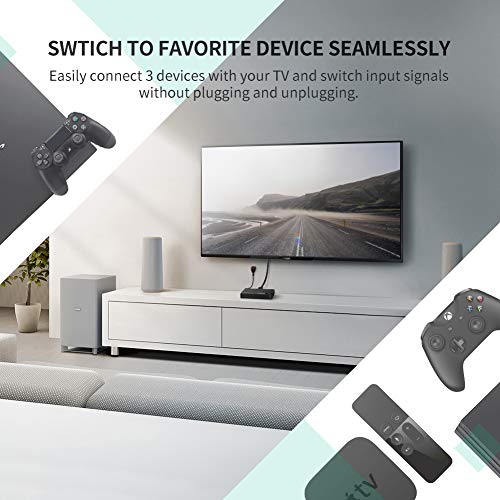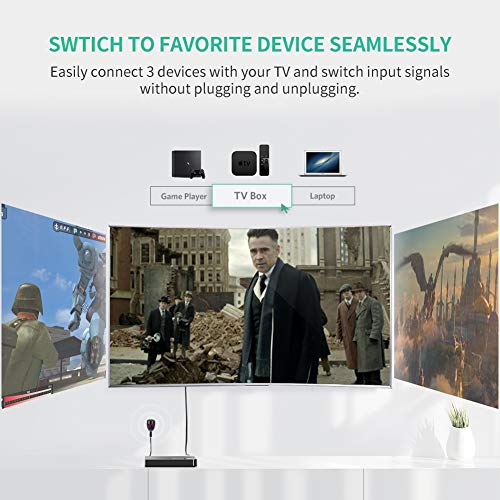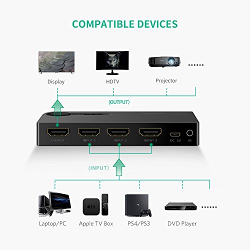 UGREEN HDMI Switch Conmutador HDMI 3D 4K, 3 Entrada x 1 Salida Mando a Distancia para PS4 PS3 Xbox Chromecast DVD BLU-Ray Decodificador Movistar Receptor Satélite PC TV y Más