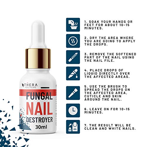 - Destructor de hongos de uñas elimina los problemas de las uñas: La fĂłrmula de Thera Healthcare Fungal Nail Destroyer ataca el nĂșcleo del problema, como las infecciones por hongos, mientras que estimula el crecimiento adecuado de las uñas. TambiĂ©n mejora la apariencia de la uña en tan solo 2 a 4 semanas. Nuestro producto restaura rĂĄpidamente un color de uñas sano hidratando la placa de la uña y suavizando suavemente las capas dañadas con un suave efecto que nivela la superficie de la uña.