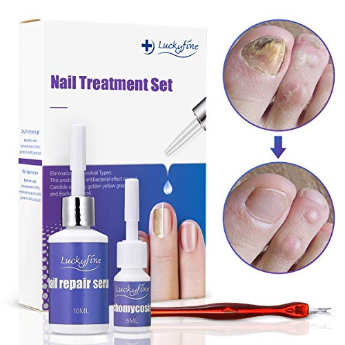 Luckyfine Kit para Tratamiento de Hongos Uñas y Pies, Antihongos Uñas - 1 x Gel de Onicomicosis + 1 x Suero para Reparador de Uñas + 1 x Tenedor para Eliminación de Piel Muerta
