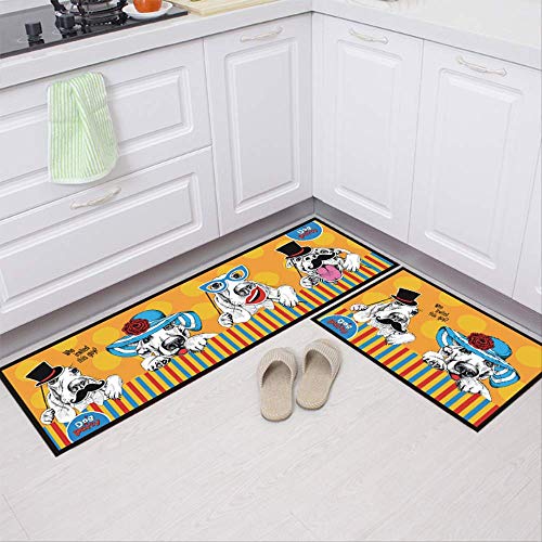 ALIANSHUO Alfombras De Cocina Alfombrillas 2 Piezas Animales Lindos De Dibujos Animados Alfombras Antideslizantes Alfombra De Piso Lavable para BaƱo Alfombra De Sala De Estar 50X80 + 50X120Cm Dof-09