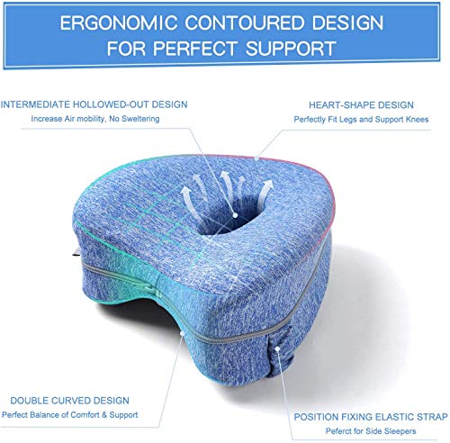 - ?[Diseño ergonómico]- Almohada de rodilla dormir está diseñada ergonómicamente para adaptarse cómodamente entre las piernas, proporcionando la alineación ideal para las caderas y las rodillas. Almohada terapeutica para las piernas ayuda a aliviar la ciática, el dolor en las piernas, el embarazo, el dolor en las caderas y las articulaciones.