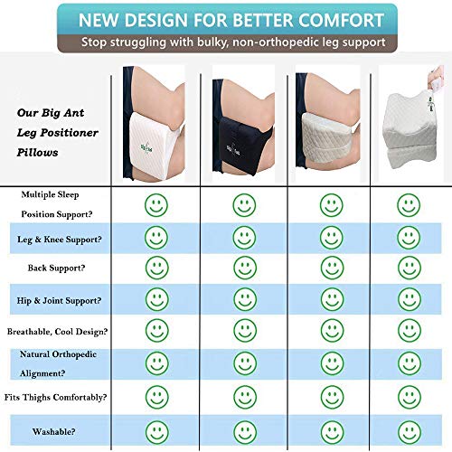 Big Ant Ortopédica rodilla cojín para ciática Alivio – mejor para pierna, espalda, y rodilla - cuña de espuma con efecto memoria Contour Pierna Almohada con funda extraíble