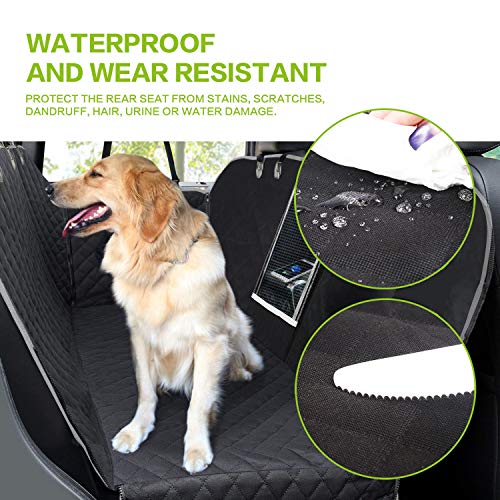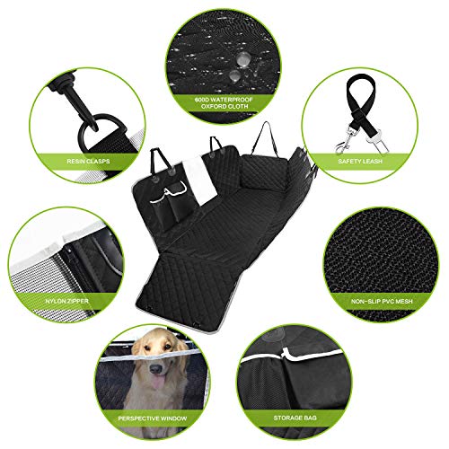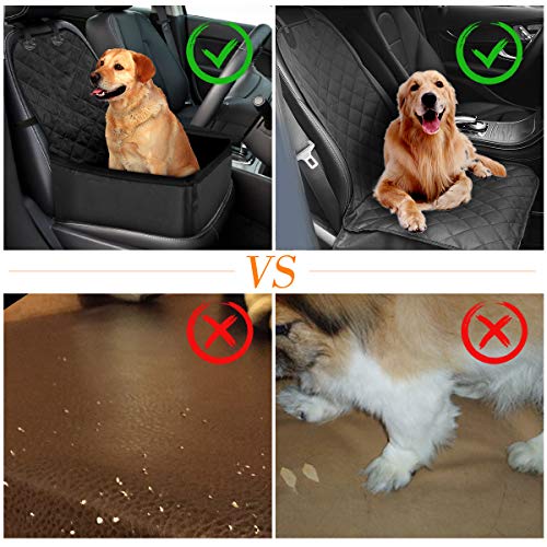- ?【MATERIAL IMPERMEABLE & ANTIDESLIANTE】 El protector de coche para perros está fabricado con material de tela resistente, con alta resistencia al rozamiento para envitar el daño a su coche durante la carga o descarga. La cubierta de asiento de perro es impermeable y a prueba de las patas fangosas, los pelos de perros, los polvos y líquidos etc. por su tejido con revestimiento de PVC. Además, las cremalleras protegen sus mascotas de la caída