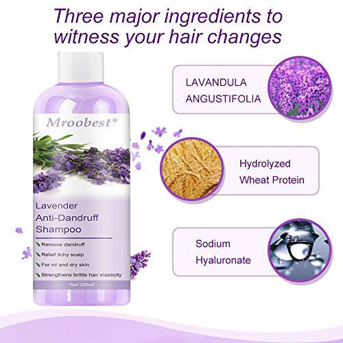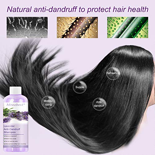 - Champú de aceite de lavanda - Champú anticaspa de aceite esencial natural para el cuero cabelludo seco que pica y escamoso - Limpiador hidratante sin sulfato - Previene los piojos y el cabello fino