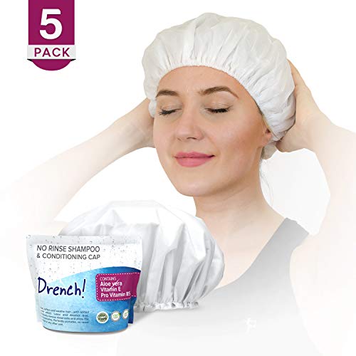 Champú Sin Enjuague Vegano (Pack x5) | Tratamiento de lujo para el cabello evita goteos, desorden o residuos. Sin agua, ¡Simplemente masajee la gorra y seque con una toalla! (de Drench! Médico)