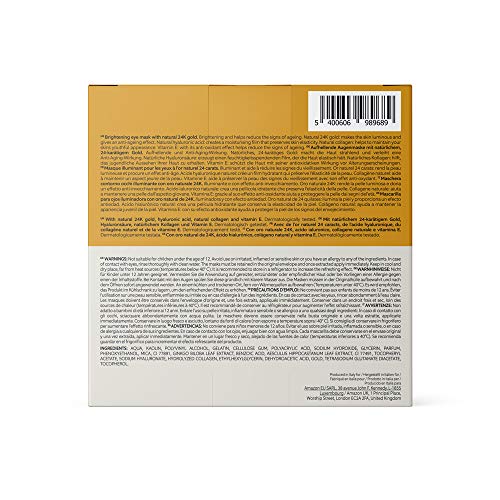 FIND - Mascarilla hidrogel, sin goteo, iluminadora para el contorno de ojos con oro de 24 quilates, pack de 5 unidades