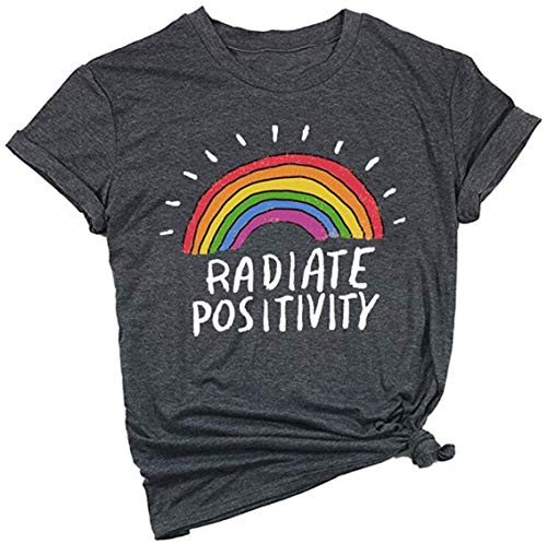 Camiseta de manga corta para mujer, diseño de arcoíris con texto en inglés Gris gris S