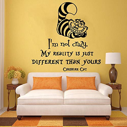 Pared de vinilo Mural niños dormitorio decoración de la habitación de los bebés Alicia en el país de las maravillas No estoy loco Etiqueta de la pared Cheshire refranes Wallpaper 43 * 97 cm