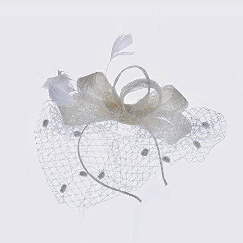 STRIR Sombrero Tocado Pelo Elegante Pluma Clip Hat Boda Coctel Malla Neto Velo Diadema para Mujer (Beige)