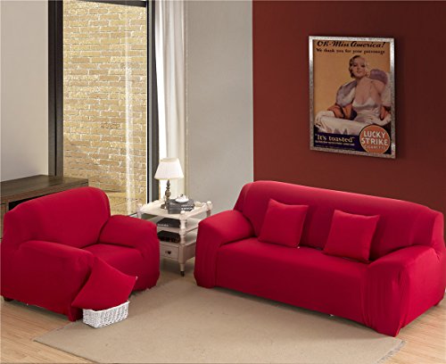 Cornasee Funda de sofá Elastica 3 plazas,Cubierta para sofá con Cuerda de fijación,Rojo