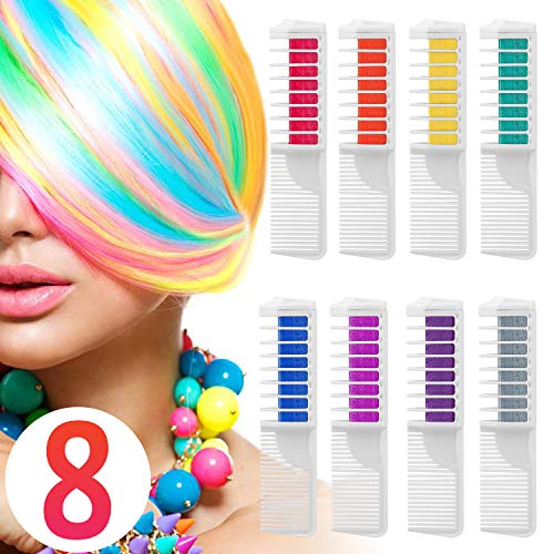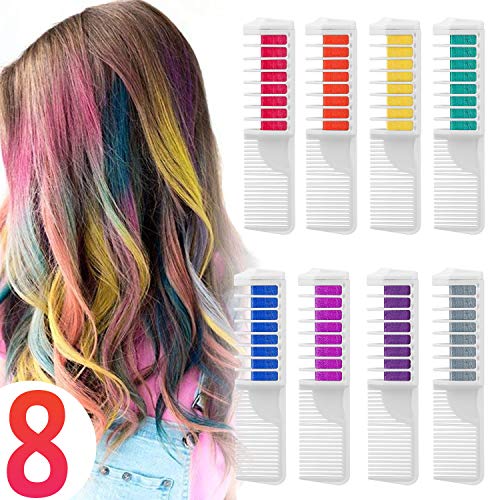Wolady Coloración Temporal Cabello Tiza Peine Cabello Tinte Cabello 8 Colores 2 en 1 Peine Coloración Color de Cabello con Guantes y Chal Desechable Niños DIY Cosplay Más Adecuado para Cabello Claro