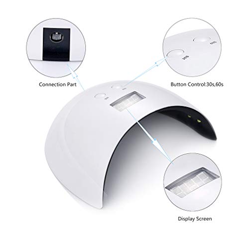- 【4 TEMPORIZADOR Y 36 LED】4 configuraciones de temporizador: 10s / 30s / 60s / 120s, modo de calor bajo para que pueda elegir según las necesidades de bricolaje. 36 LED se distribuyen uniformemente en el interior para ayudar a curar uniformemente el esmalte de uñas de gel. La luz natural del LED no daña las manos y los ojos.