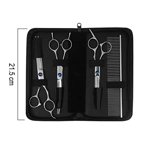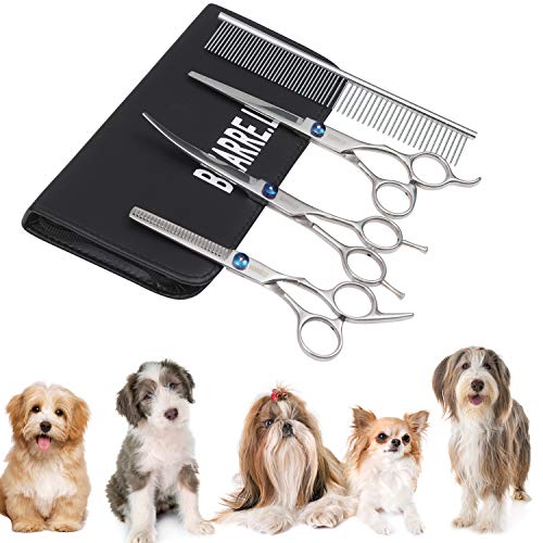 BIZARRE.LY 4 Piezas Kit de Peluquería Canina Perros y Gatos -Tijeras de Mascotas Incluye Acero Inoxidable Tijeras Curvas, Tijeras de Recorte y Peine