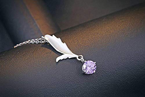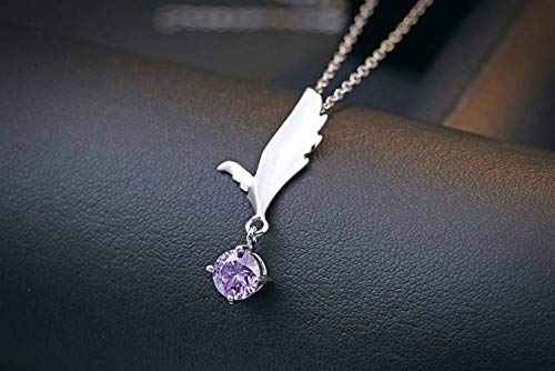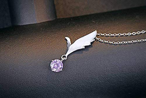 Good dress S925 Colgante Femenino de Plata Esterlina Collar de Alas de Ángel Simple Joyería, Púrpura, como se Muestra