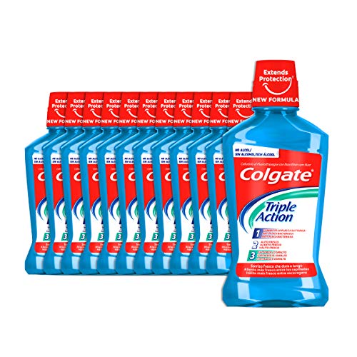 Colgate Enjuague Bucal Triple Action Antibacteriano, Pack 12 uds x 500 ml