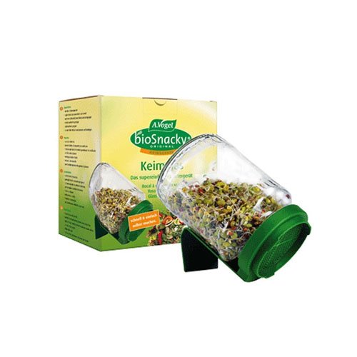 - Vidrio ecológico con una tapa especialmente diseñada como tamiz para que puedas enjuagar tus brotes en desarrollo.