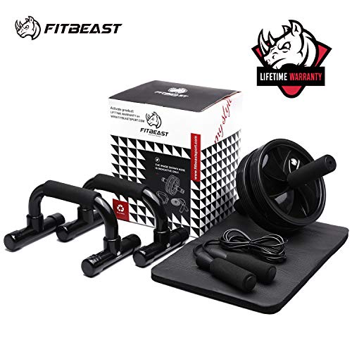 - 【EQUIPO PARA RUTINA CASERA DE EJERCICIO 3-EN-1 】: El set de rodillo abdominales de rueda doble, viene con barras para hacer flexiones, cuerda para saltar y rodilleras. Es ideal para cualquier persona que quiera fortalecer la fuerza de tronco de su cuerpo y conseguir una mejor figura. Este equipo de ejercicio para abdominales podrá ayudarte a estirar y ejercitar los músculos de tu abdomen, brazos, pecho, hombros, espalda e incluso conseguir un six-pack.