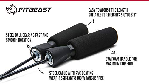 - 【CUERDA PARA SALTAR AJUSTABLE Y DURADERA】 : El alambre de Acero-PVC de la más alta calidad, asegurará que tenga una resistencia contra el uso y el desgaste. Esta cuerda para saltar viene con manijas antiderrapantes hechas de hule espuma, para mejorar la absorción de sudor y brindar una comodidad adicional. Alambre de Acero de 3M (10 pies) que puede ser ajustado rápidamente para adultos, niños, atletas profesionales y principiantes.