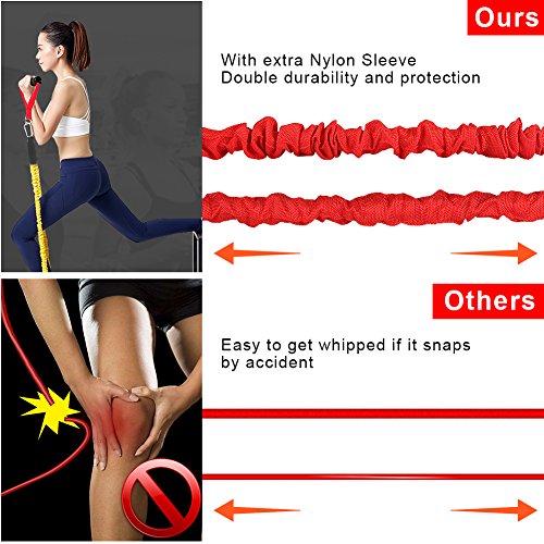 - MATERIALES DE PRIMERA CALIDAD, SEGUROS Y DURADEROS - Estas cintas de ejercicio están hechas de látex 100% natural, por lo que mantienen su resistencia máxima incluso tras un uso repetido. Las exclusivas hebillas de aleación de aluminio, las asas de espuma antideslizante que absorbe el sudor y la cómoda y resistente correa tobillera aseguran una mayor seguridad de uso y comodidad