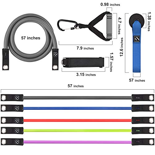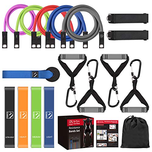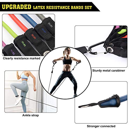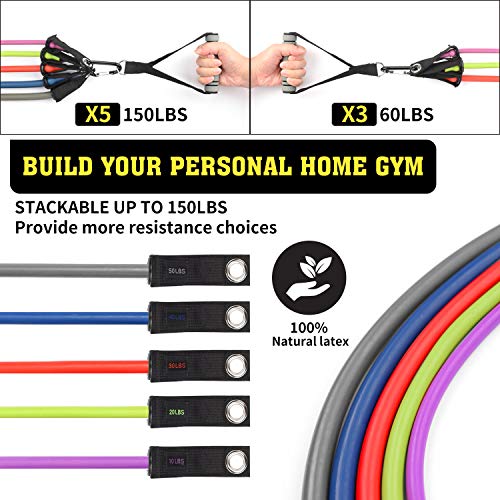 FITINDEX Set Resistencia de 22 Piezas con Asas,Cintas de Entrenamiento,5 Correas de apilables de hasta 150 lbs con Anclaje a Puerta&Correa Tobillera para Hacer Ejercicio en Interiores o al Aire Libre