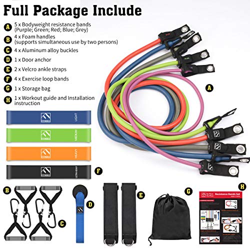 5 Cuerdas Elásticas de Fitness WEINAS® Set de Banda de Resistencia Desmontable con Mango de Espuma, Anclaje para Puerta, Correas de Tobillo, Sistema de Entrenamiento en Suspensión para Ejercicios