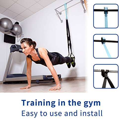 - Instalación Sencilla: Puede utilizarse suspensión de fitness en marcos de puertas, ganchos y barras - Incluye anclajes de puerta sin herramientas. Inclue soluciones de anclaje para diferentes lugares de entrenamiento.