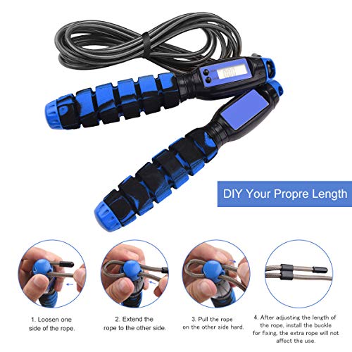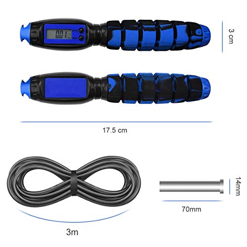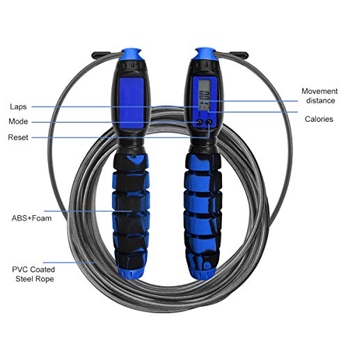 - 【Pantalla Inteligente HD】Esta cuerda de saltar de 2.8M está equipada con una pantalla inteligente de alta definición, que puede mostrar el número de vueltas / calorías / distancia de movimiento (pantalla de millas o KM) en tiempo real, lo que le ayuda a conocer su volumen de ejercicio en cualquier momento y completar su plan de ejercicio con mayor precisión.
