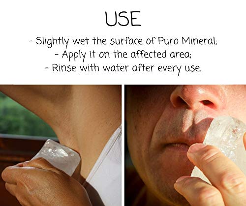 - ¿Cómo se usa el desodorante de piedra de alumbre natural? Muy fácil: moja ligeramente la superficie de Puro Mineral y pásalo por la zona que desees. La duración es comparable a la de los desodorantes industriales, pero no es agresivo en pieles delicadas.
