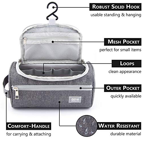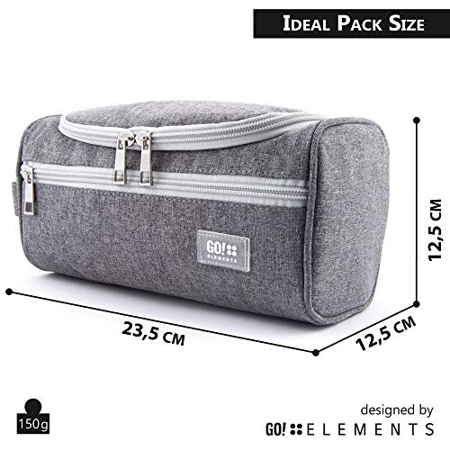 GO!elements® Bolsa de Aseo | Mochila para Colgar Hombres y Mujeres | Bolso cosmético Hombre Mujer para Maletas y Equipaje de Mano | Bolsa de Viaje Bolsa de Lavado, Color:Gris