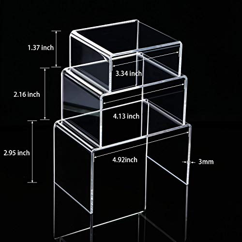 - El paquete incluye: 2 juegos de elevadores de pantalla acrílicos transparentes cuadrados, cada conjunto contiene 3 piezas de elevadores de exhibición en 3 tamaños diferentes, 6 piezas en total