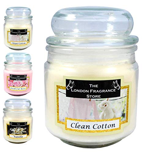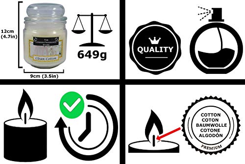 THE LONDON FRAGRANCE STORE - Vela Perfumada Cera de Soja - Aceites Aromáticos 75 Horas - Algodón Limpio - Mediano - En Frasco - Mecha de Algodón - Blanco