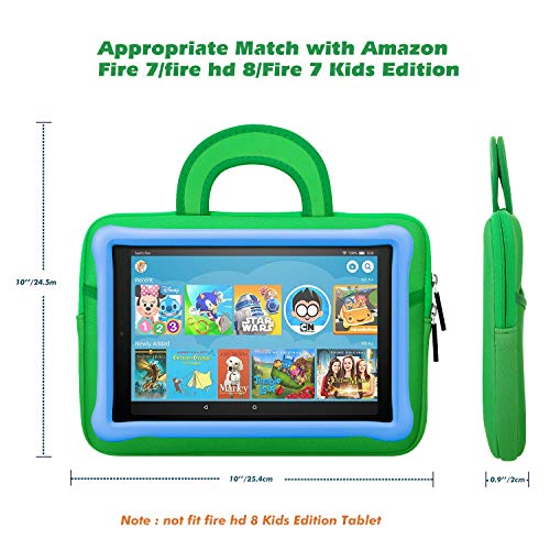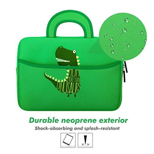 MoKo Funda de Fieltro Compatible con Amazon Tablet 7-8 Pulgadas - Maletín Portátil de Neopreno para Fire Kids Edition (5th Generación, 2015), Fire 7 2019/2017, Fire HD 8, Dinosaurio Verde