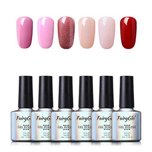 Fairyglo 3en 1 Esmaltes Semipermanentes en Gel UV LED, 6pcs Kit de Un paso Esmaltes de Uñas 10ml 002