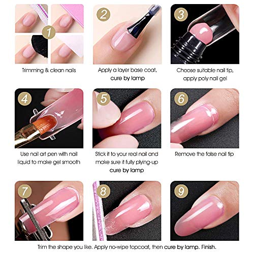 - âŠăPerfecto para bella damaă - Con este kit de gel de extensiĂłn de uñas todo en uno, ahorre tiempo y dinero para el salĂłn de uñas, y puede crear varias uñas de extensiĂłn adornadas y hermosas u otro diseño de uñas. Solo trae tu salĂłn de manicura a casa.