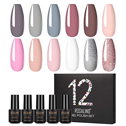 ROSALIND Esmaltes Semipermanentes de Uñas en Gel UV LED, 12pcs kit de Esmalte de Uñas Pintauñas 7ml (001)