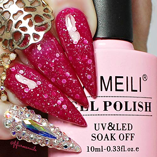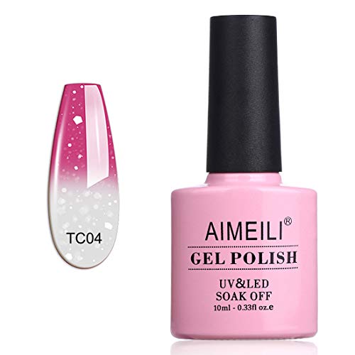 AIMEILI Esmalte Semipermanente De Uñas Temperatura Cambio De Color Camaleón Soak Off UV LED Uñas De Gel - Hot Pink to Glitter White (TC04) 10ml