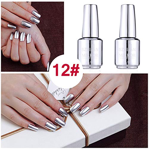 Lurrose Esmalte de uƱas con Espejo, Color metĆ”lico, Esmalte de uƱas, Accesorio de Gel artĆstico para uƱas (12 Plata)